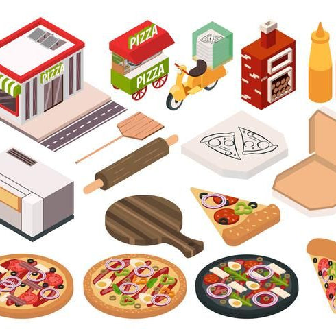 Ensemble complet de matériel destiné à l’exploitation d’une pizzeria.